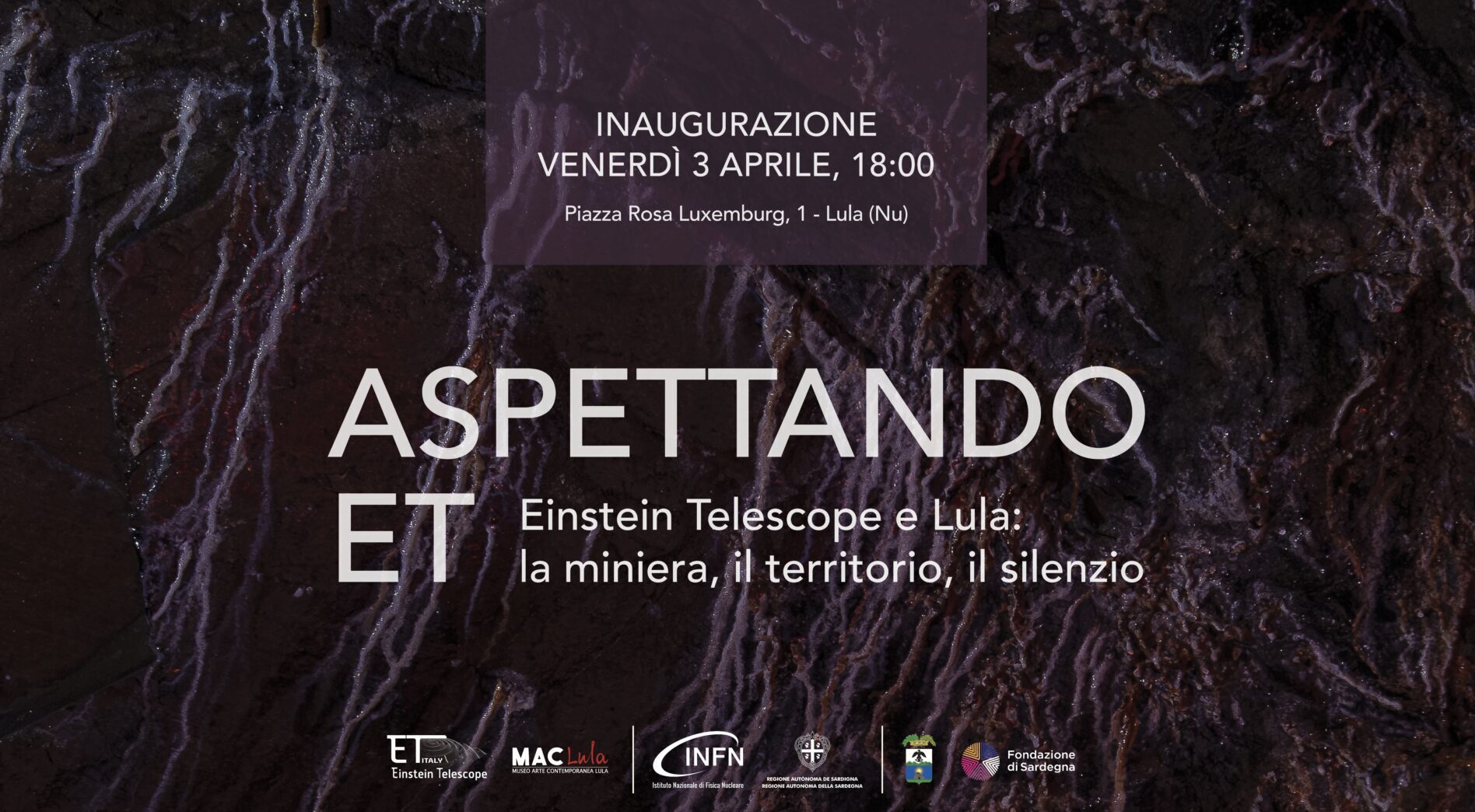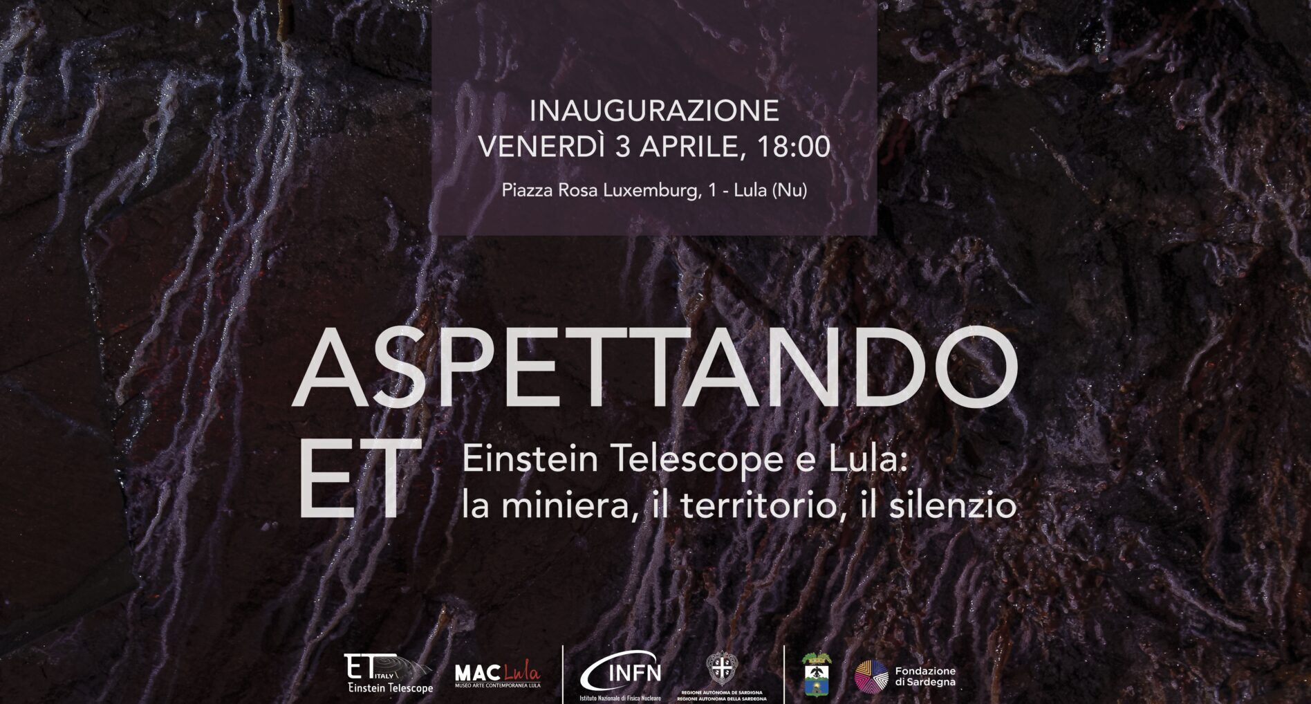 Venerdì 3 aprile 2026, alle ore 18:00, si terrà l’inaugurazione della mostra fotografica “Aspettando ET”, allestita negli spazi del Museo Diffuso d’Arte Contemporanea (MAC) di Lula (NU), in piazza Rosa Luxemburg, 1. Il progetto fotografico – prodotto dall’Istituto Nazionale di Fisica Nucleare (INFN), con la collaborazione del MAC Lula e della Regione Sardegna – è curato dal fotografo Raffaele Petralla e dall’astrofisica e divulgatrice scientifica Edwige Pezzulli. All’evento inaugurale, aperto dai saluti dei curatori del MAC Lula, Domenico Fumagalli e Mariolina Mannia, interverranno il sindaco di Lula, Mario Calia, il consulente della Regione Sardegna per il progetto ET, Raffaele Marras, il direttore della sezione di Cagliari dell’INFN, Alessandro Cardini, e i curatori della mostra, Edwige Pezzulli e Raffaele Petralla. Coordina la giornalista Carlotta Lucato (Unitelsardegna).