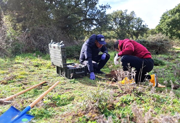 As part of the Sardinia Far Fault Observatory (FABER), a second group of researchers from the INGV conducted another experiment with the aim of completing the map of environmental noise. In the Municipality of Bitti (NU), seventeen broadband seismometers (array) were installed according to a special “helix” configuration capable of capturing the high-frequency seismic noise that propagates in the first 200 meters underground. The instrumentation used, acquired as part of the PNRR Monitoring Earth’s Evolution and Tectonics (MEET) project, will return useful data for the study of the variations and sources of that “seismic silence” that makes the Sos Enattos site unique.
